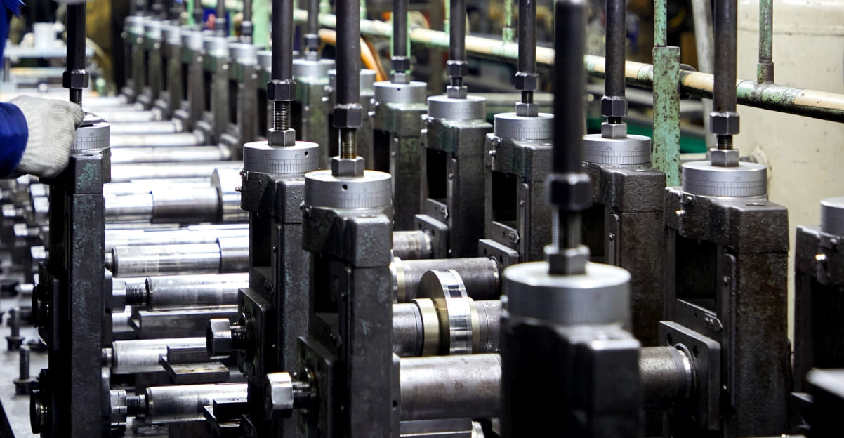 ロール金型はフリーで回転し素材を引き抜きながら素材を曲げたり圧延したりする方式です。