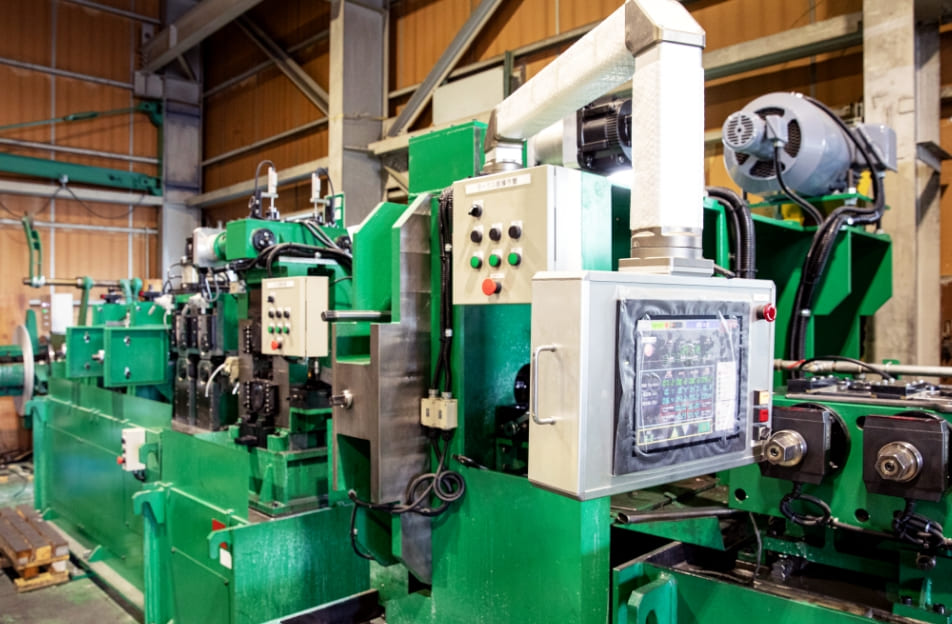 ロールフォーミング加工には、駆動力を金型に伝達し成型を行いながら製品を押し出すフォーミングマシンと材料を牽引する事で、金型から材料を引き抜きながら製品形状にするドローイングベンチがあります。弊社ではこの2種類の機械を使用し、お客様の希望に沿ったロット、形状、材料の厚み等により、その製品にあった製品の特徴が最大限に活かされる成型加工方法を選びます。